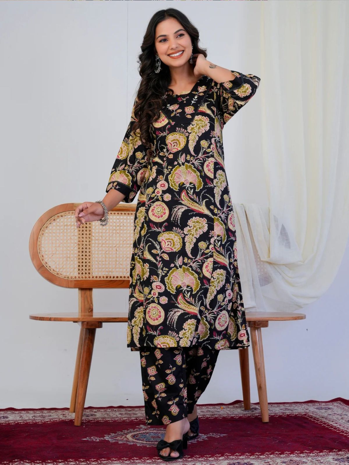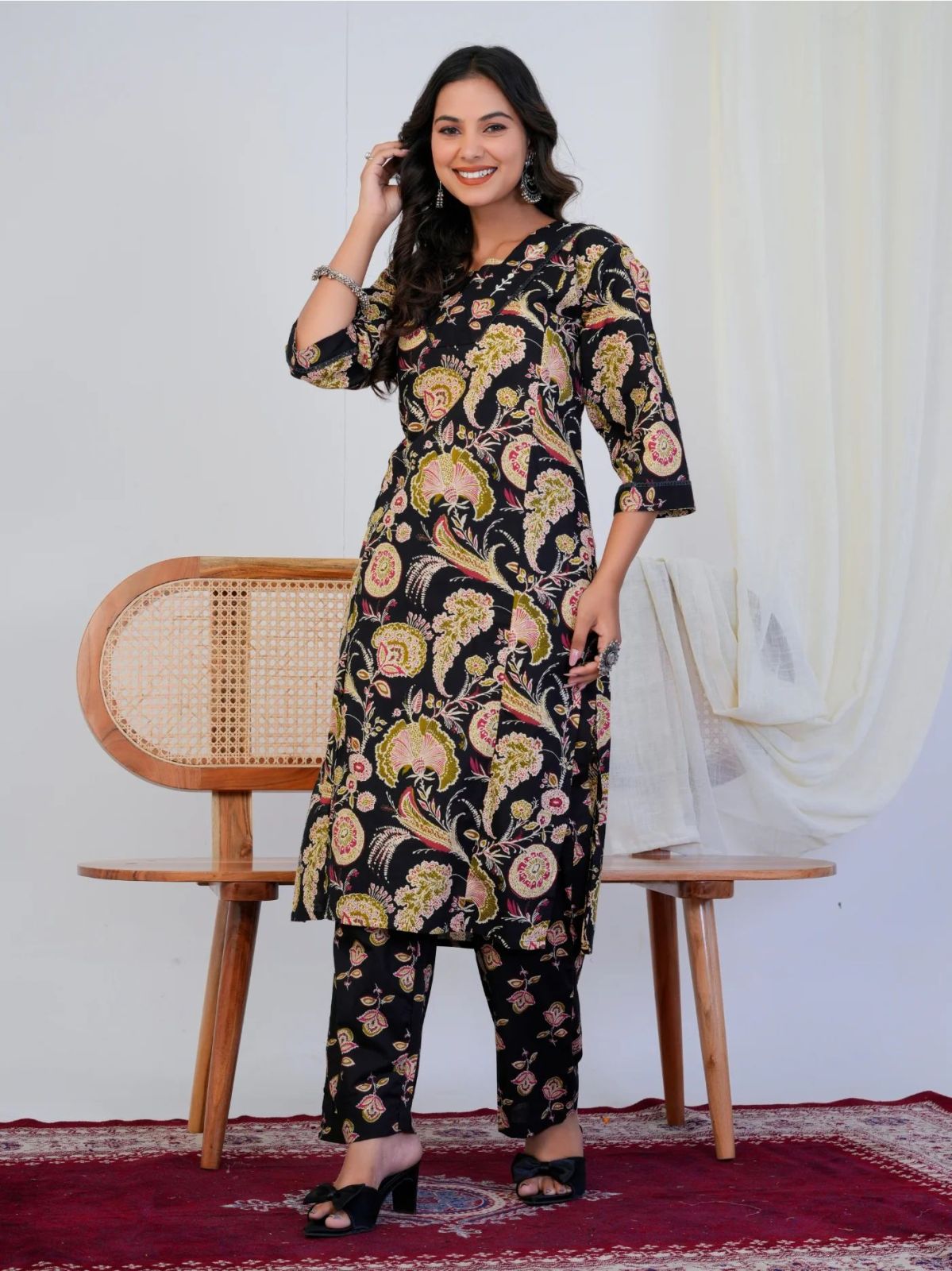 Home › Products › Co-Ord Sets Collection › Black Floral Print With Handwork Co-Ord Set
