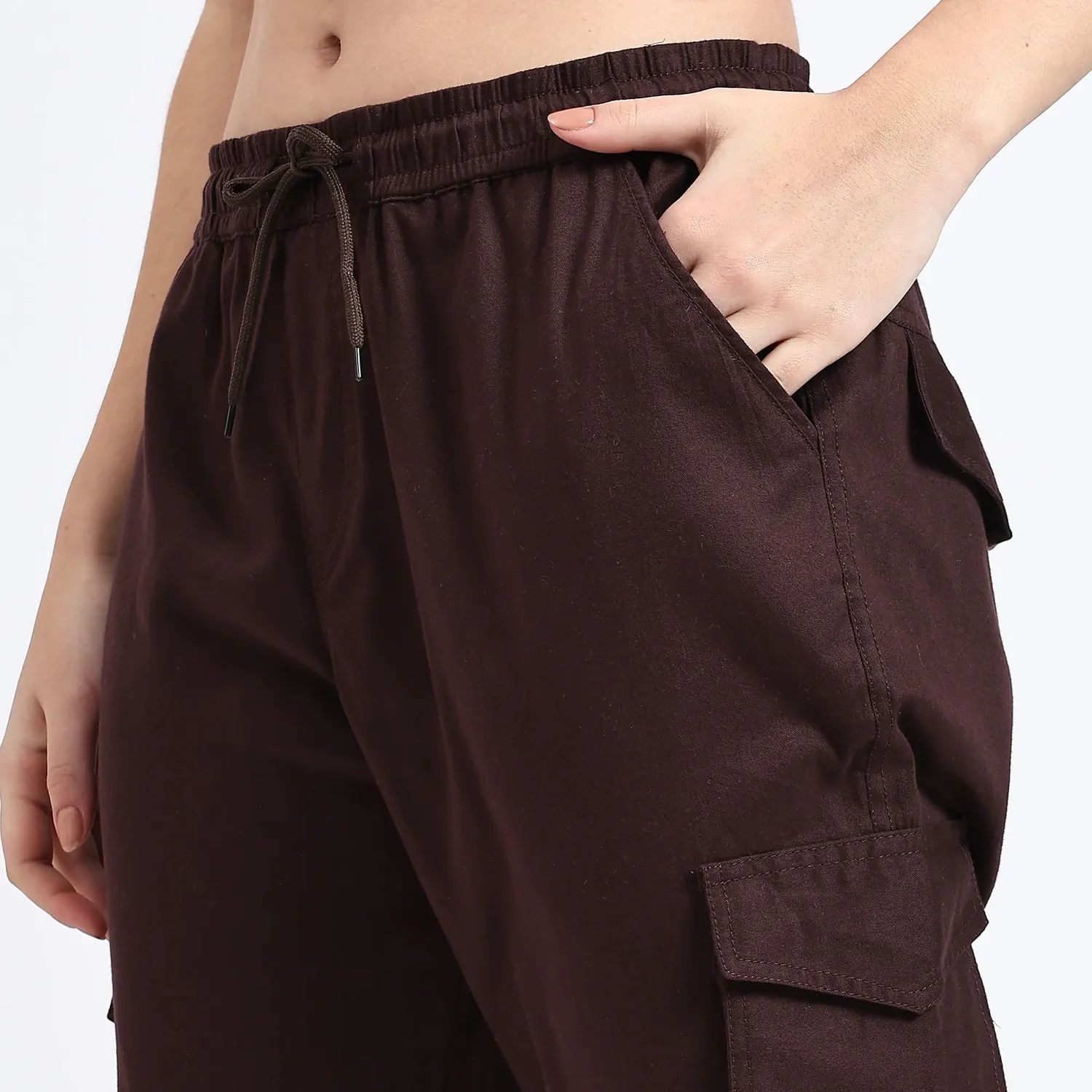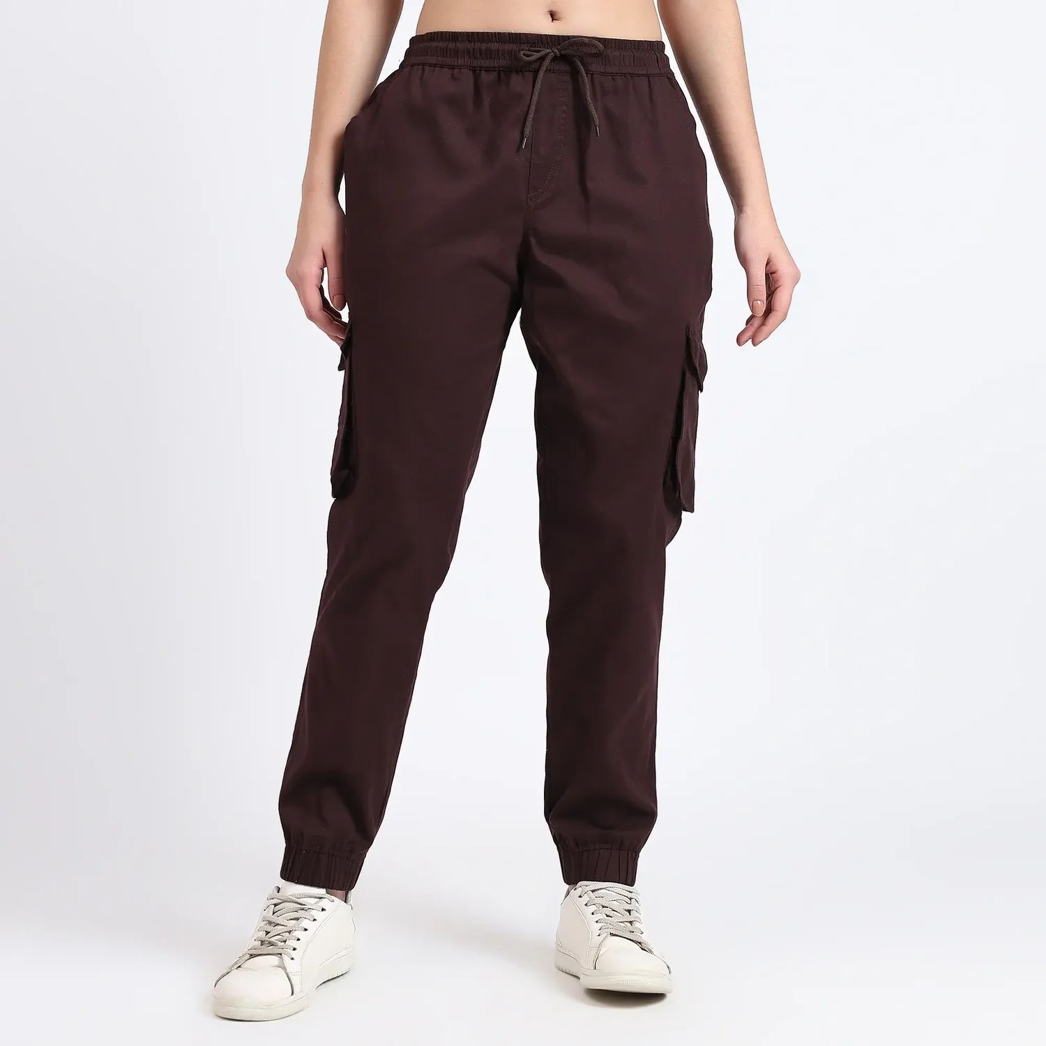 Home › Products › Cotton Cargo Joggers › Dark Brown Women Cotton Cargo Jogger
