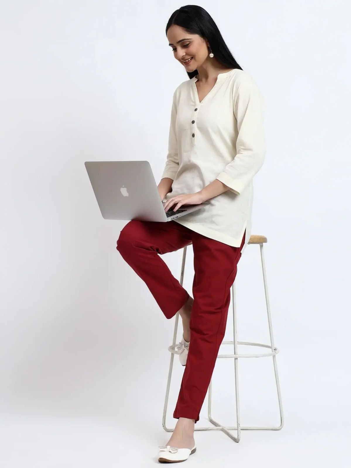 We offer a versatile Ecru Wine Linen Cotton Short Kurta Pant Set in sizes ranging from S to 4XL. This set features an airy linen short kurta with cotton pant, designed for a regular fit. The 3/4th sleeves and mandarin collar add a formal touch, while the 20% linen + 80% cotton kurta fabric ensures comfort. The kurta is adorned with 3 wooden buttons, complementing the 100% cotton pant with a mid-rise fit. Ideal for exporters, suppliers, and traders looking for quality and style in their offerings.