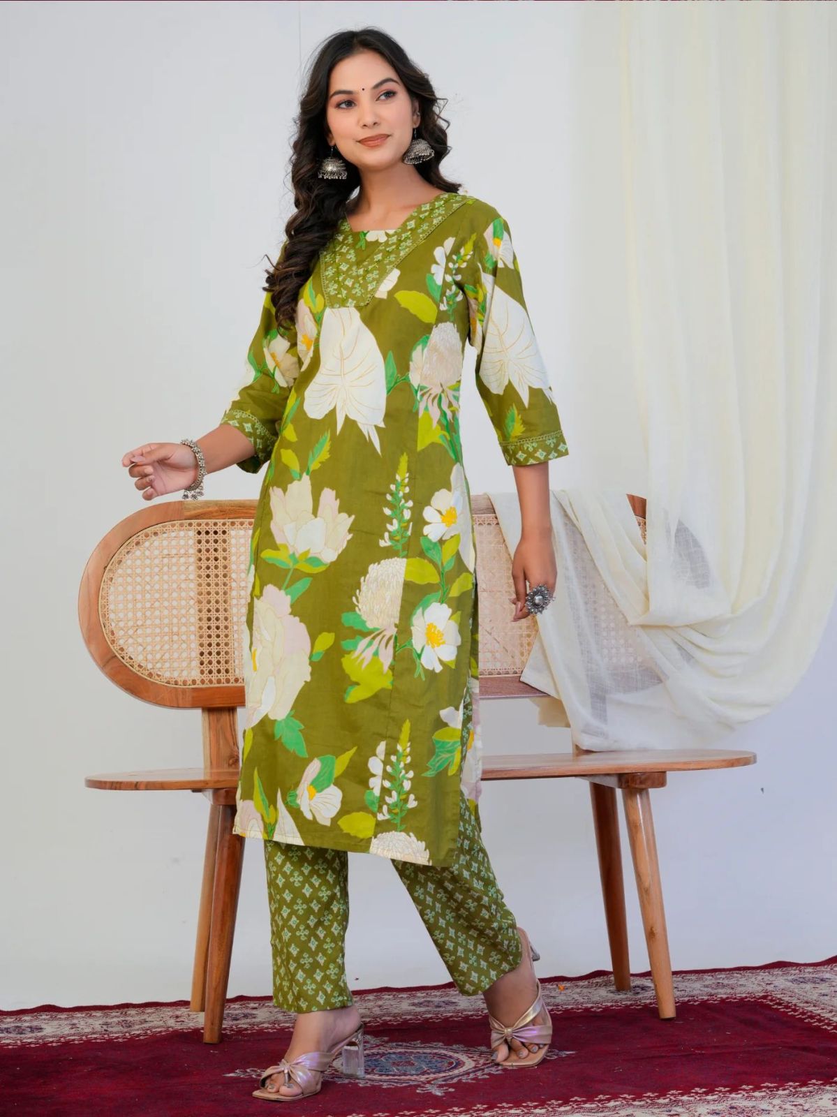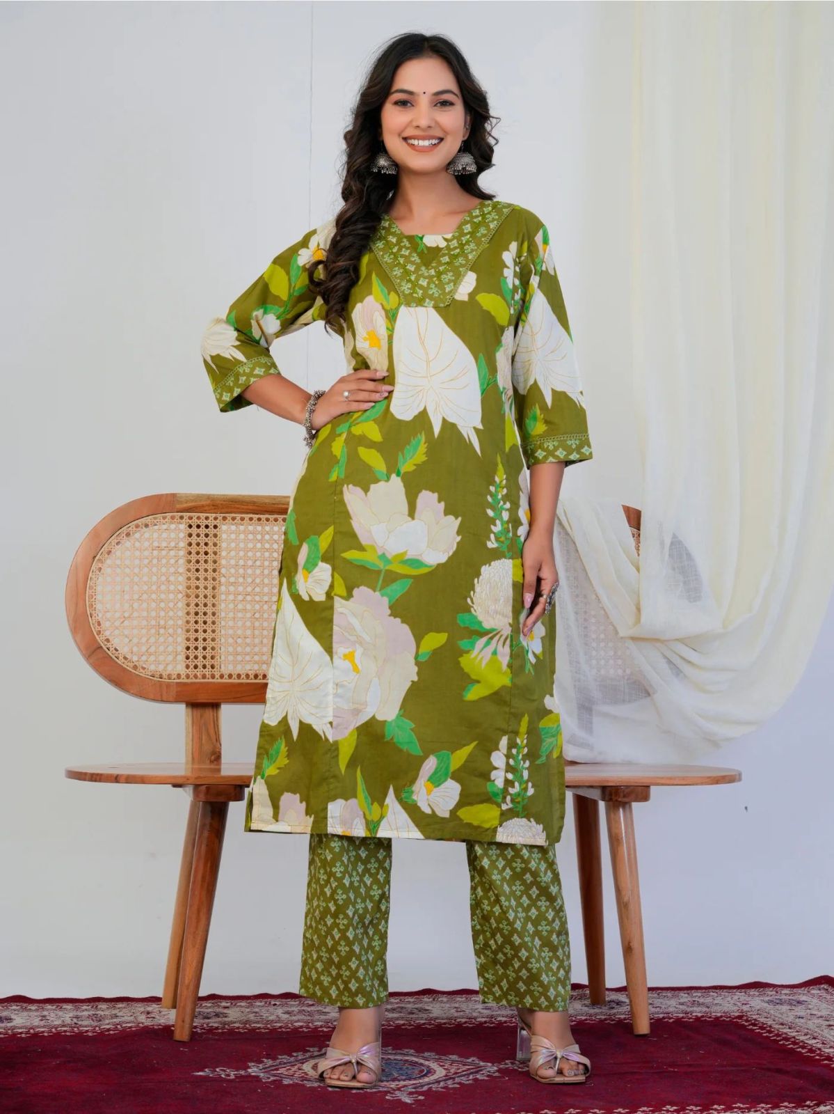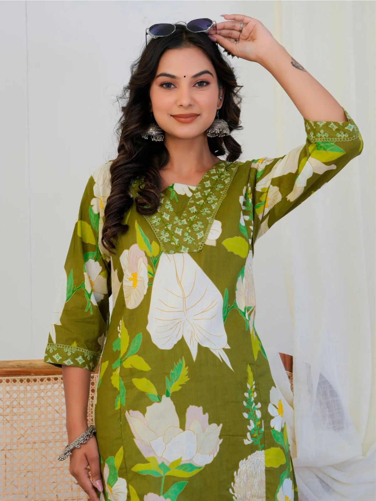 Home › Products › Co-Ord Sets Collection › Green Floral Print With Handwork Co-Ord Set