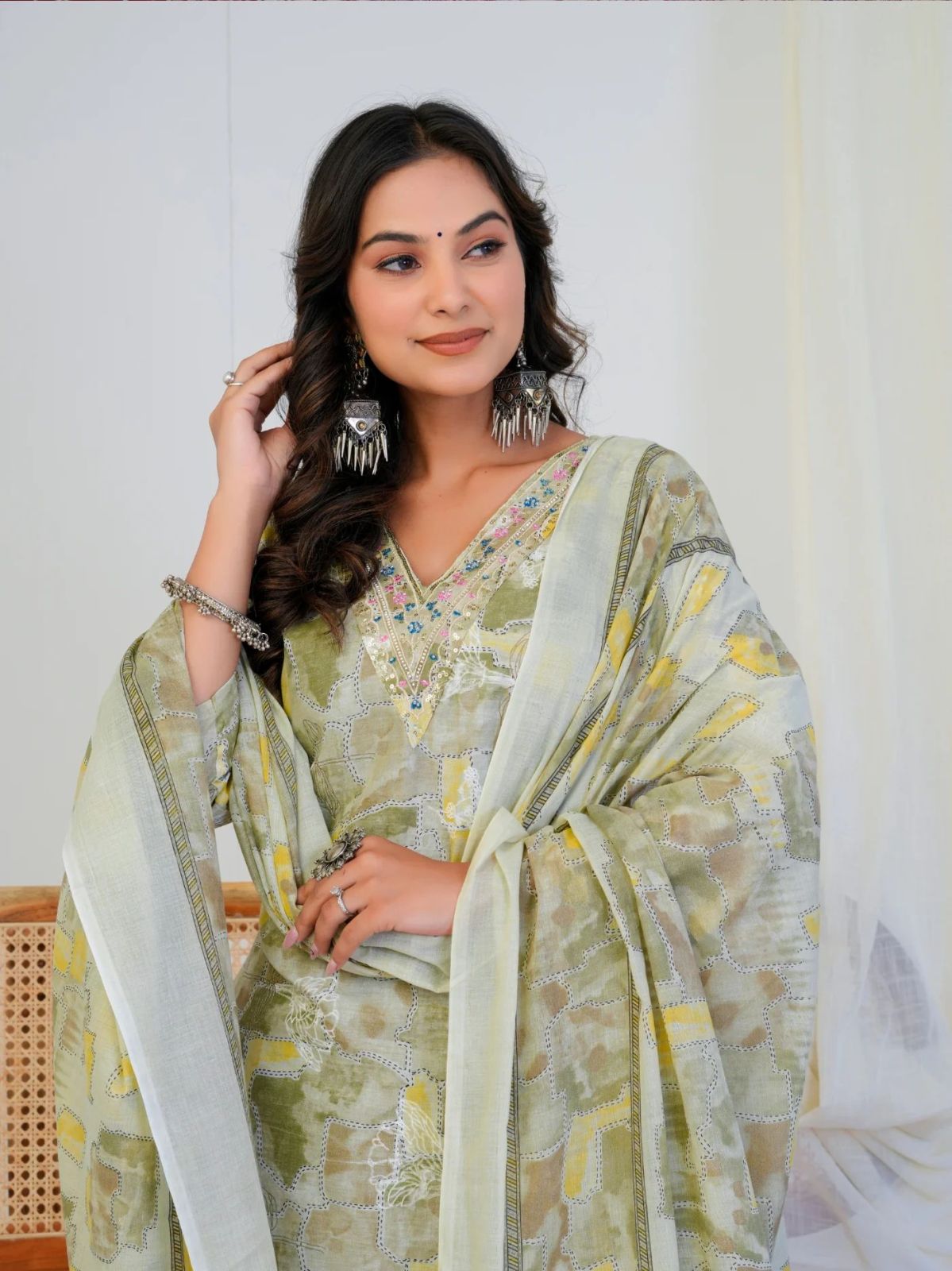Looking for "Light Green Abstract Print With Handwork 3 Piece Suit Set" ?